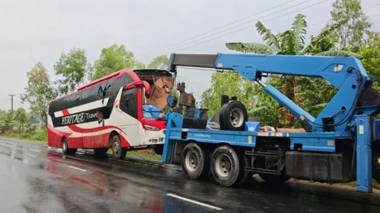 পুলিশ জানায়, দিনাজপুর থেকে যাত্রী নিয়ে ঢাকার উদ্দেশে ছেড়েছিল হেরিটেজ স্লিপার কোচ নামের একটি বাস। চন্ডিপুর এলাকায় পৌঁছালে রাস্তার পাশে দাঁড়িয়ে থাকা বালুবাহী ট্রাকের পেছনে সজোরে ধাক্কা দেয় বাসটি। এতে ঘটনাস্থলেই বাসের চালকের সহকারী ও এক যাত্রী নিহত হন।